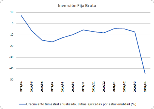 Así, la inversión liga 15 meses consecutivos de caídas anuales y mostró su peor descenso desde que existen reportes estadísticos. Esperamos que la inversión continúe deprimida por el COVID, incertidumbre de algunas políticas públicas y un sector externo menos dinámico. Continuamos esperando que la economía se contraiga 12% este año.