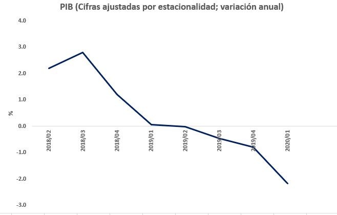 En términos anuales, es decir, el crecimiento con respecto al primer trimestre del 2019, con cifras ajustadas por estacionalidad, el PIB cayó 2.2% y las importaciones se redujeron en 5.1%. Por su parte, el consumo privado cayó 1.2% y la formación bruta de capital fijo registro un crecimiento negativo de 9.5%. En contraste, el consumo del gobierno creció 3.3% y las exportacioness en 1.7%. Con cifras originales, el PIB se contrajo en 1.9% en el primer trimestre del año.