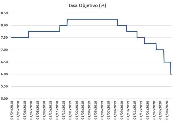 La Junta de Gobierno del Banco de México decidió disminuir en 50 puntos base la tasa de interés objetivo ubicándola en 6%. La fuerte contracción de la economía debido al COVID-19, así como la caída histórica en el precio del petróleo permitió a la autoridad monetaria disminuir la tasa objetivo, aunque persiste el riesgo al alza de la inflación por la depreciación que ha tenido el peso mexicano a lo largo del año. Asimismo, el Banco de México implementó acciones de política monetarias no ortodoxas mediante diez medidas, las cuales en su conjunto tienen la intención de ayudar al sistema financiero seguir operando en tiempos económicos desfavorables, al proveer liquidez en el mercado cambiario, así como a las instituciones financieras, ofrecer créditos a las PYMES de manera indirecta, y disminuir el comportamiento procíclico que están teniendo las instituciones de crédito. Los apoyos, en conjunto con el gobierno federal, suman 3.3% del PIB. Creemos que estas medidas son bienvenidas en el entorno actual para fortalecer los niveles de liquidez de las Pymes. Sin embargo, sin apoyos directos del gobierno federal, este estímulo será acotado.